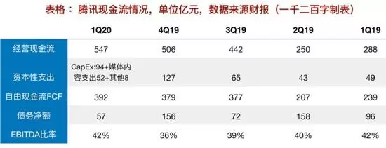 但全球市场行情却是相反的。据欧洲富而德律师事务所发布的《2020年第二季度并购市场观点透视》报告(上图),二季度全球并购交易额仅为3186亿美元,创下了2003年三季度以来的历史新低。疫情是主要影响因素,而主要业务在线上的腾讯受此影响相对较小。下面分别从自由现金流与业务角度分析一下腾讯“逆势”并购的情况。