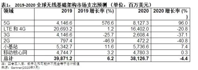 Gartner预测:2020年全球5G网络基础架构支出将接近翻倍