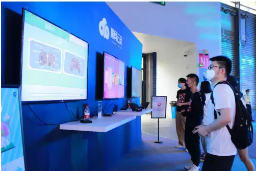 顺网科技展台现场,设置的“硬件区”、“软件区”、“场景区”等产品体验区供玩家现场体验。顺网云玩允许玩家分别在PC、移动设备、电视大屏上感受云游戏的画质和操作,记者选择在独具特色的大屏场景,体验了该款云游戏产品。