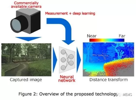 东芝现已克服这一问题,他们开发的具有3D识别技术的人工智能,采用普通的单目摄像头,无需场景数据,仅利用深度学习来分析图像模糊(模糊的形状)如何根据其在镜头上的位置而变化,从而实现与立体摄像头同样高精度的距离测量(图2)。