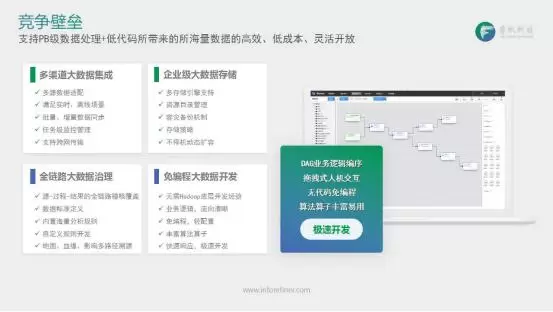 目前,睿帆科技最大的护城河在于“支持PB级数据处理+低代码”所形成支持海量数据的高效、低成本、灵活开放的局面。“无代码”+“低代码”+“SDK”三级开发模式与支持PB级数据处理能力,是睿帆科技对外打出的口号。
