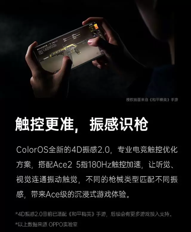 振感反馈作为游戏中感知最强的一环也没有被落下,4D 振感 2.0 结合专业电竞触控优化,让 Ace2 的强大硬件大放异彩,听觉、视觉、振感融为一体,给用户提供了更加立体的 3D 感受,沉浸感十足。