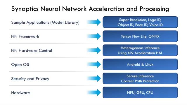 这个需要的解决方案从一个SOC平台开始,该平台集成了多种类型的处理器引擎:CPU、NPU、GPU和ISP,以及与高性能相机和显示器的挂钩。这种架构实现了高度安全、低成本推理和实时多模式性能的理想组合。Synaptics Edge AI系列是一系列SoC,每个SoC都高度针对其给定的消费类应用。该系列中的每个SoC都集成了所需的处理内核以及该应用程序的适当级别的集成AI性能。