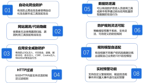 通付盾Web爬虫防火墙产品整合代理监测、智能建模、HTTP过滤、攻击防护等防护技术,同时智能决策引擎,能够对所有访问客户业务服务器的公网流量进行检测、过滤,保障源站业务免受恶意攻击引发的数据泄露、业务欺诈等安全问题,产品兼具以下核心优势: