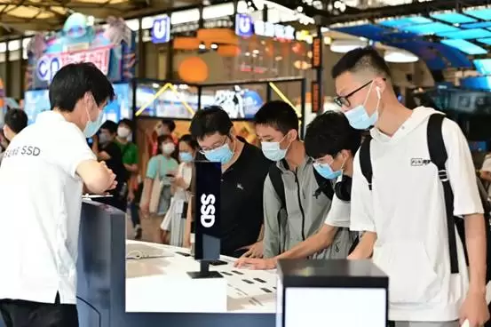 为了让更多到场玩家了解三星品牌存储产品,我们在展台内设置了产品展示区,专业的产品经理认真地为前来了解的玩家进行讲解。