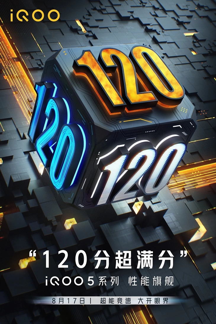 2020 年 8 月 4 日,@iQOO手机官方微博发布全新旗舰新机iQOO5系列的概念视频,并官宣将于8月17日举行发布会,引发众多网友期待。官方随即抛出“120超满分旗舰”全新概念,诠释新品iQOO5系列超越满分的强劲实力,用户也纷纷猜测iQOO5系列的“120分配置”。