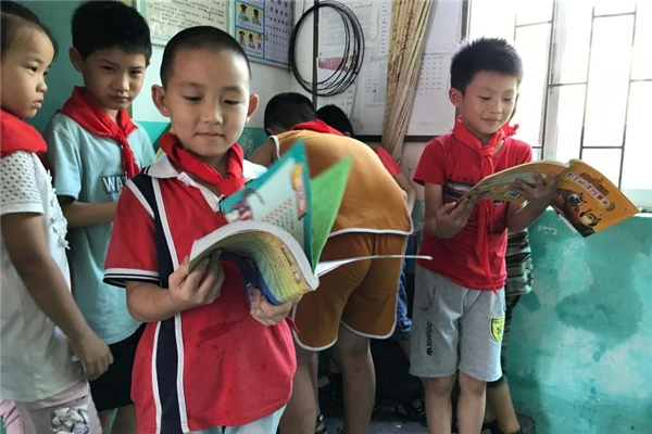 受赠校区小朋友阅读中