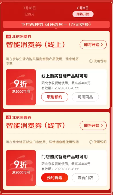 值得惊喜的是,8月8日当天,京东APP将会发放新一轮的北京消费券,智能消费券最高可减400元,让你在秒杀日尽情买,爽个够!