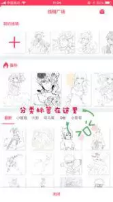 喵图APP支持手机号、微信、QQ等多种登录方式,登陆后就可以体验人工智能上色带来的魔法特效啦!首先,点击屏幕下方功能栏中的画笔图标,在线稿广场中拍照上传[我的线稿],或者选择平台推荐的优秀线稿作品,还有多种分类标签帮你检索哦,用户也可以自己创建标签,热门标签会被推荐至线稿广场。