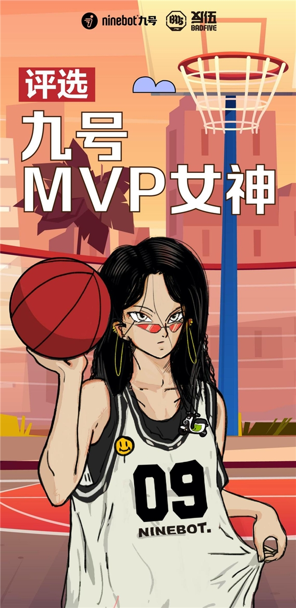 除此之外,此次线上活动不局限于3+1篮球联赛现场的观赛者和比赛者,九号机器人还在微博发起了评选 #九号MVP女神# 的活动,只要在2020年8月7号-2021年1月期间,在微博发布女生与九号/篮球有关元素的合影,参与话题并@九号电动,展示最靓丽的姿态,即可参与微博投票评选,获胜者同样会获得各种惊喜礼品。