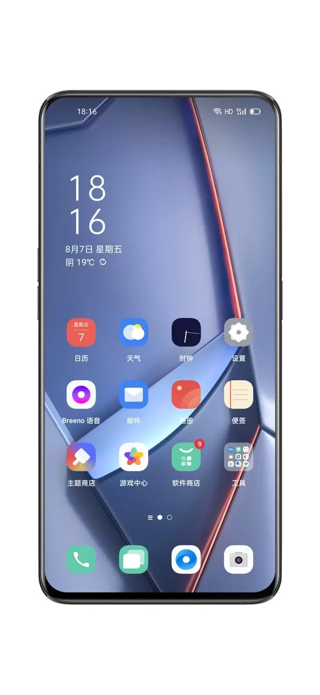 ColorOS 7整体贯穿了OPPO"轻快无边界"的设计理念,将画面线条进一步减少,图标化繁为简,更为轻巧,同时为了能够匹配壁纸色彩,在饱和度方面也有所降低,整体设计更加偏向年轻化。