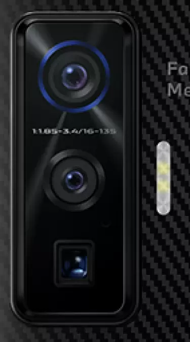 手机摄像头部分的设计也十分好看,依旧采用了模块化阵列设计,闪光灯部分移至摄像头模块右侧,使得整体摄像头更加简约,加上CD镭射纹营造出的效果,让视觉效果丰富不单调;而顶部摄像头周围的蓝色装饰圈,颇有高端相机镜头的风格,似乎在强调iQOO 5 系列“120分”的影像能力,可谓是点睛之笔。