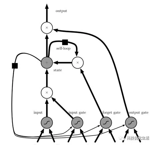 LSTM循环网络除了外部的RNN循环外,还具有内部的LSTM细胞循环(自环)。