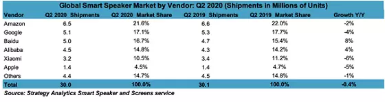 2020年Q1-Q2季度,因为受到疫情影响,人们消费欲望降低,消费类电子产品市场首当其冲,包括智能音箱品类也受到了一定的影响。但小度在国内其他智能音箱品牌增长放缓甚至出现负增长的情况下,保持了唯一的正增长,强势守住市场份额,印证了国民第一智能音箱品牌的实力。
