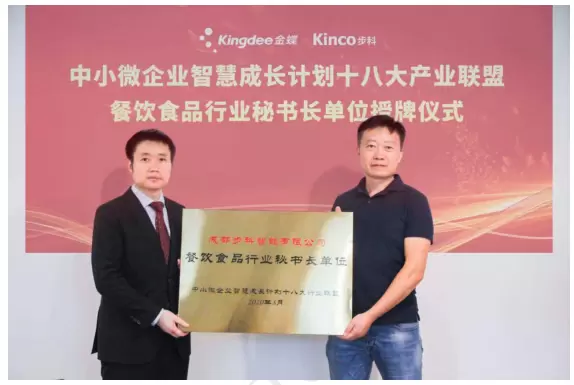 会上举行了“中小微智慧成长计划十八大产业联盟”-餐饮食品行业秘书长单位授牌仪式,金蝶中国副总裁张海军代表金蝶向成都步科,授予“餐饮食品行业秘书长单位”称号,这是“中小微智慧成长计划十八大产业联盟”的第一张授牌,意义重大,同时也是继“KK数字化工厂解决方案”(金蝶&步科智能制造解决方案)后,金蝶与步科的再次强强联手,双方将围绕中央厨房领域,打造餐饮食品行业的智慧中央厨房解决方案,助力中国餐饮食品行业数字化转型。