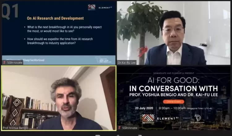 日前,在一场以“深度科技造福人类”为主题的科技活动上,创新工场董事长兼CEO李开复对话图灵奖得主、深度学习领域先驱之一约书亚·本吉奥(Yoshua Bengio),共同探讨新冠肺炎疫情时期,AI如何助力未来的经济社会更加富有弹性、宜居和可持续。
