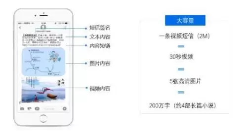 视频短信是一种多媒体形式的短信。一条视频短信可以承载时长30秒的视频,或5张高清图片,或200万字(约4部长篇小说)。