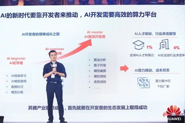 致辞中,许映童谈到,AI是未来科技竞争的关键,是所有国家争夺的制高点,全球已有50多个国家发布了与AI相关的战略,而我国在AI领域最大的优势是人才。国内100多所高校都开设了华为的AI课程,培养了大量的开发者,可以源源不断地为企业、研究机构输送人才。许映童还强调,华为把开发者作为最宝贵的资源和伙伴,开发者就是未来,希望与开发者们一起为昇腾生态建设添砖加瓦,一起为中国AI产业发展贡献自己的力量。