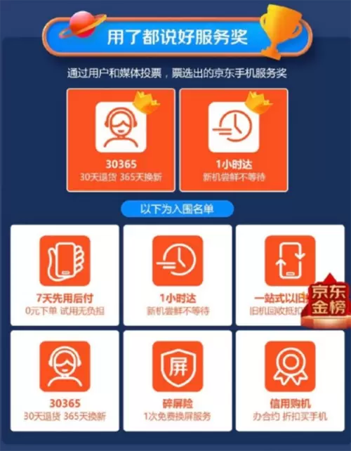 京东设立金机奖的初衷,是为消费者购机提供权威的消费指南,打造消费者购机风向标,集消费者需求反哺消费者。因此,其服务奖项的设定也更偏向用户体验,金机奖的“小心思”不可谓不贴心。