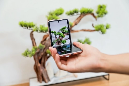 折叠的艺术在三星Galaxy Z Flip 5G不仅体现在外观上,其上下折叠的独特设计,也给日常使用赋予了更前沿的体验。通过多任务处理功能同时操作两个应用程序,上下分屏、工作娱乐两不误。通过调整Galaxy Z Flip 5G的翻折角度,你还能够自由设定不同的拍摄视角。无论是利用低角度拍摄动态视频,还是在高角度下记录一顿下午茶,只需在自适应分屏模式下双击屏幕,即可将相机的预览窗口从屏幕的上半部分切换至下半部分。