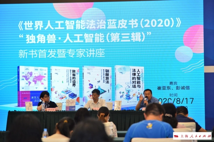 由上海人民出版社主办的《世界人工智能法治蓝皮书(2020)》(下简称《蓝皮书(2020)》)和“独角兽·人工智能”丛书(第三辑)新书首发暨学术讲座于在8月17日下午上海展览中心友谊会堂一楼举行。