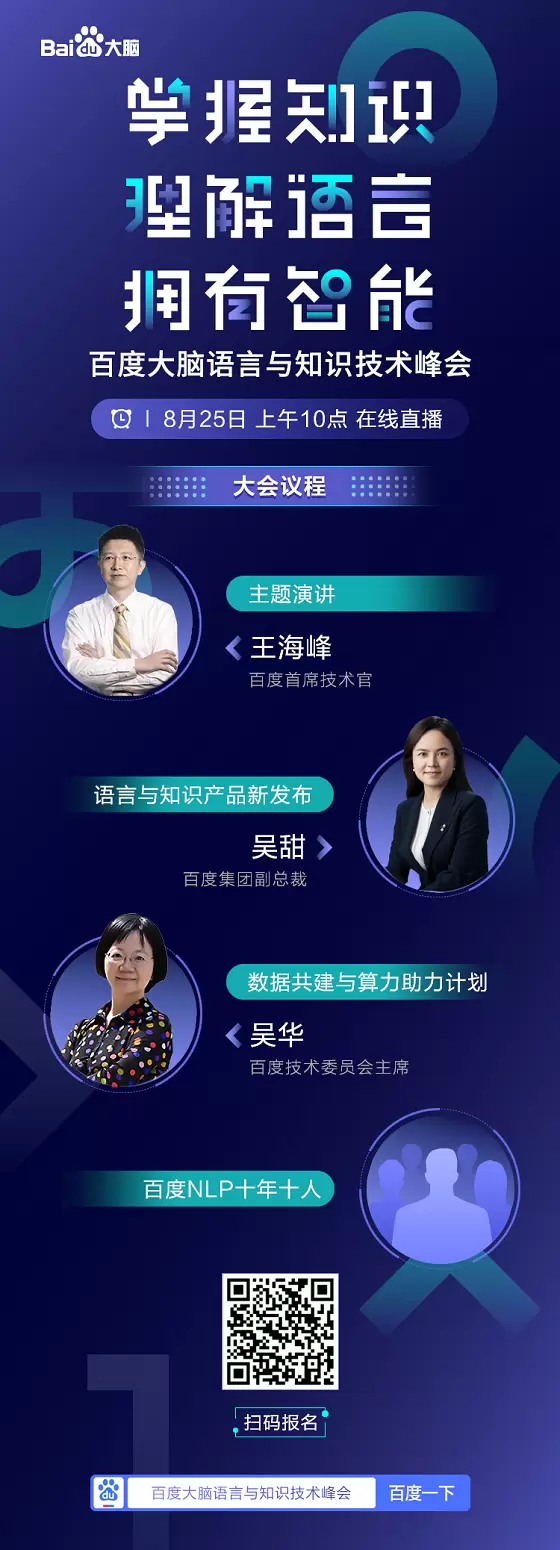 百度语言与知识技术峰会定档七夕!百度CTO王海峰领衔发布NLP“爆款”