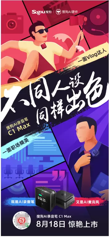 8月18日,搜狗旗下新一代AI硬件产品——搜狗AI录音笔C1 Max正式上市,京东、天猫、搜狗商城全面开卖。自预售起,这款主打“录音笔麦克风二合一“的产品,凭借小巧的机身及强大的功能受到了Z世代的追捧,成为“后浪”首选视频拍摄设备,也成为了众多斜杠青年的必备生产力工具。