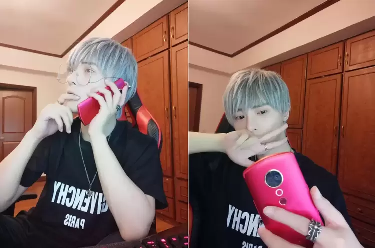 而看起来像某直播截图中,董翔宇在接了一个电话之后,又用美图T9开始玩起了自拍,还比了一个个酷酷的剪刀手,可见最近董翔宇真的很喜欢最近新入手的新机。