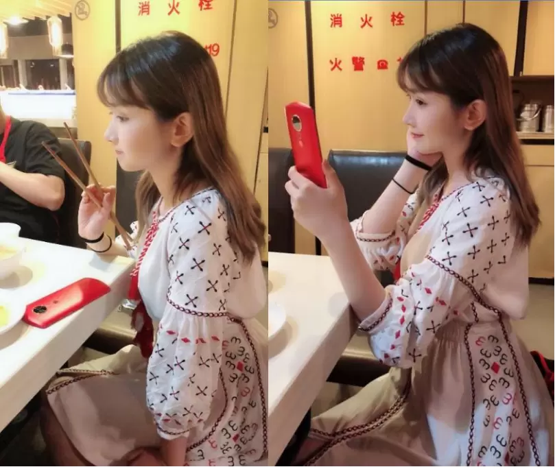coser小圆脸雪雪身穿白色蕾丝裙萌到不行,浆果红美图T9手机尤其抢镜。而在另一场私人聚会上,吃着饭的雪雪还不忘拿起手机自拍,这一幕也被她的友人记录下。照片中,雪雪侧颜更是萌杀粉丝,小编借此也想替粉丝们说句话:图上雪雪正在自拍的这张自拍照,请务必交出来。