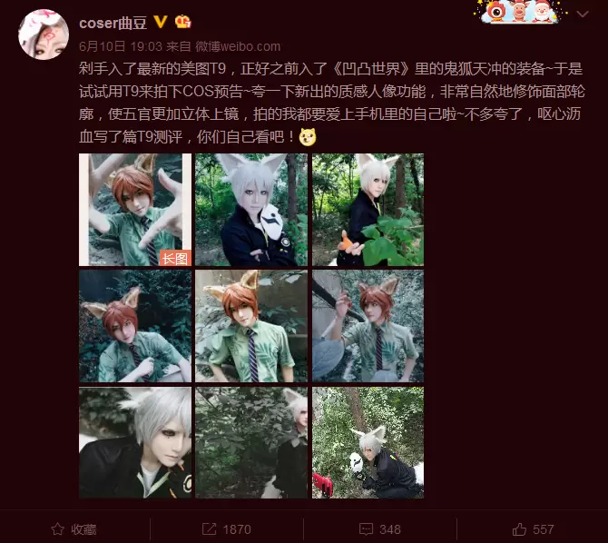很快,曲豆也晒出了美图T9的cos大片,质感好到让人落泪。