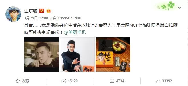 入手美图M8s七龙珠限量版,大东也不禁秀一波,小编被这个侧颜帅到了。