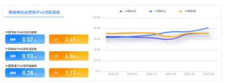 国家IPv6发展监测平台数据显示,截至2020年6月,我国基础电信运营商的固定宽带IPv6活跃连接数已达1.7亿