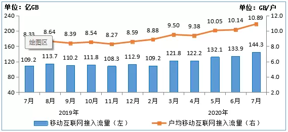 7月户均移动互联网接入流量达10.89G 同比增长31%