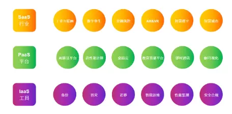 1. SaaS及行业层:提供工业互联网、数字孪生、金融风控、AR&VR、智慧楼宇、智慧城市等“智慧+”方案,从行业应用切入,提供针对行业的一站式云解决方案;