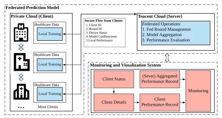 早在去年,腾讯天衍实验室和微众银行在医疗大数据、医学影像辅助诊断等领域便展开了合作,通过AI技术赋能的成果转化切实提高医务工作者的效率。联合实验室研究员赵瑞辉和鞠策联合研发了基于医疗联邦学习框架的“脑卒中发病风险预测模型”,该模型成功破解医疗行业信息孤岛和隐私保护难题,实现了在保护不同医院数据隐私下的疾病精准预测,其预测准确率高达80%。另外,通过联邦学习技术,大型三甲医院数据资源可以帮助医疗服务匮乏病例少小型医院在模型预测指标上提升了10-20%。该工作以论文形式陈述(论文链接:https://arxiv.org/abs/2006.10517),并被FL-IJCAI'20高分录用。同时,该工作获得腾讯公司十大微创新项目奖。