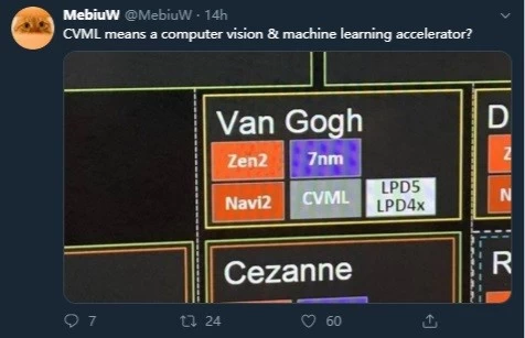 MebiuW 表示,首款采用 Navi2 核显的 APU“梵高”被贴上了“CVML”的标签,预示该系列处理器或将支持 “计算机视觉和机器学习 ”新特性,有一定概率针对部分专业市场推出。