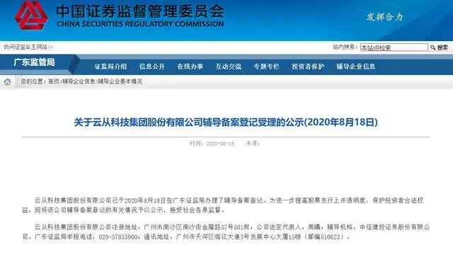 8月18日,广东证监局官网披露,作为国内四大AI独角兽之一的云从科技已办理辅导备案登记。