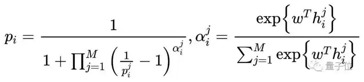 其中,pi和p(i)^(j)分别是第i个包及其包里的第j个实例的正类概率;M为包里的实例数;w是网络参数;h(i)^(j)是包i里的实例j对应的特征。