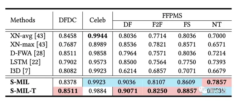 研究人员在DFDC、Celeb和FFPMS数据集上对S-MIL进行了评估。