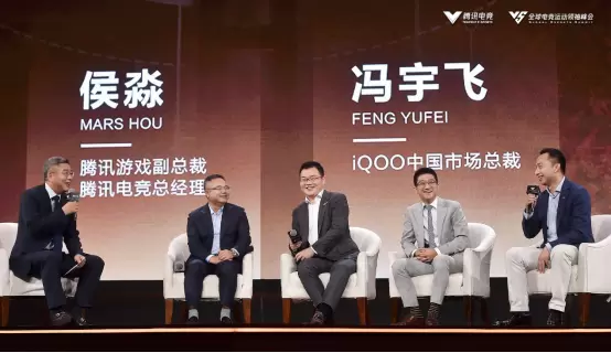 iQOO中国市场总裁冯宇飞(左三)出席2020全球电竞运动领袖峰会