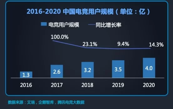 电竞是年轻人的体育竞技,是一种追求更高更快更强的精神,代表着不断探索更强悍的自己的态度。随着移动电竞的迅速发展和大众化普及,中国电竞用户基础也在进一步扩大。根据企鹅智库联合腾讯电竞最新发布的2020 全球电竞运动行业发展报告显示,2020年,中国电竞用户预计将达到4亿,同比提升14.3%。在庞大的电竞用户基数下,中国电竞已进入用户情感培养、商业价值开发和细分市场运营的阶段。