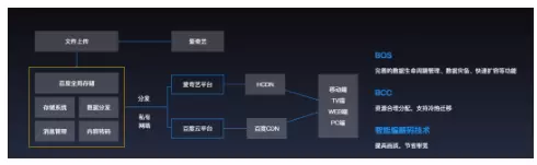 基于百度云计算、存储、CDN等方面的能力,双方联手打造了混合云方案。爱奇艺的视频上传到百度核心存储,然后通过智能编码技术对视频进行处理,再通过专有线路将内容分别分发到百度云平台和爱奇艺平台,爱奇艺通过自有HCDN技术将内容分发到用户侧的各个终端。在生产侧利用百度云BCC或者BBC,爱奇艺可以在生产侧实现动态弹性的生产,在降低成本的同时,保证高效的用户体验,实现双赢。