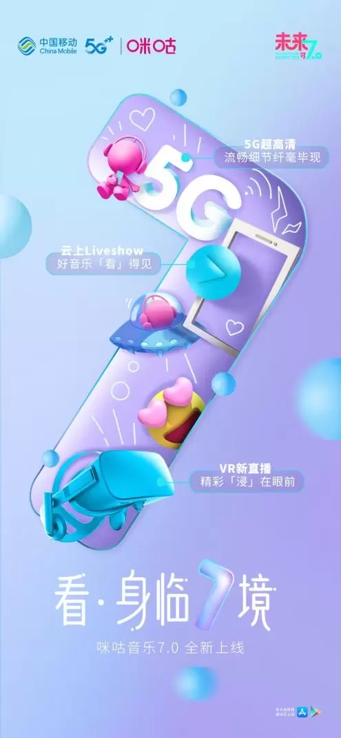 5G时代下,人们对于音乐体验有着更高的需求。作为国内领先泛音乐服务平台,咪咕音乐7.0版本秉承着"放肆听,趣玩乐"的品牌主张,以独家的5G技术+新""声"级体验,为音乐行业注入更多活力,也将为乐迷们打开更为精彩的音乐世界。