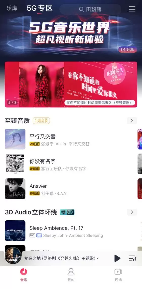 基于乐迷在多场景下对音乐的高品质体验需求,咪咕音乐7.0版本首页上线了"5G专区",包括至臻音质、臻3D、极光音效等独家功能。想要享受"录音室母带级"的音质效果?数万首至臻音质曲库,将为用户开启5G新听法,,乐迷还可以选择清澈人声、音乐殿堂等6大独家音效,徜徉在音乐海洋之中;而全新推出的高品质音效产品——臻3D,则赋予听众身临其境般的音乐体验。