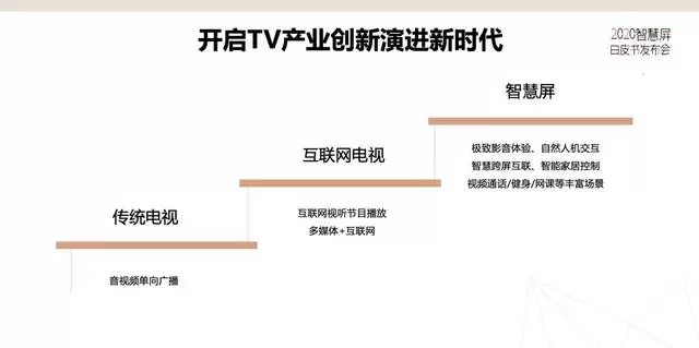 判断是否为智慧屏产品的标准不是产品命名里是否包括"智慧屏",而是《2020智慧屏白皮书》中围绕音画质、智能交互、互联协同等方面标准定义的"八大能力",当中既包含了基本的影音能力,又有对人机交互和IoT互联生态的要求。《2020智慧屏白皮书》的制定明确了新一代智能电视产品发展的方向和要求,推动着电视行业的产业变革,也标志着电视行业已经进入3.0时代。