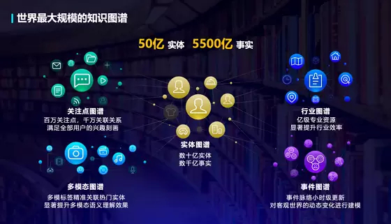其中,知识图谱是机器认知世界的基础。机器认知能力的突破,越来越依赖对知识和大规模知识图谱的运用。百度打造了世界上最大的多源异构知识图谱,拥有超过50亿实体和5500亿事实,并在不断演进和更新,已应用于各行各业,每日调用次数超过400亿次。
