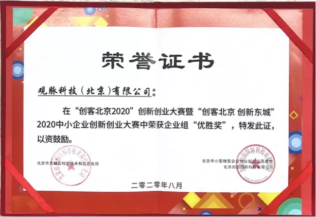 又双叒叕获奖了!观脉科技获 “创客北京2020”创新创业大赛优胜奖