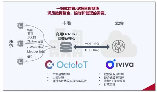 文思海辉是全球IT解决方案服务商,拥有25年发展历史,3万名员工。Eutech是全球软件公司,专注于为全球建筑行业提供设计、开发和实施的解决方案与服务。IVIVA,是Eutech公司推出的一款提供广泛应用程序和技术的工作场所云平台。文思海辉OctoIoT通过一系列的互联网协议,将建筑内各设备数据及时传输到本地,通过MQTT协议和HTTP协议,上传至IVIVA云端,与IVIVA云端应用程序和技术相结合,通过IVIVA的独特数据管理技术,支持数字化工作场所、智能建筑和智能区域等解决方案的落地与实施。
