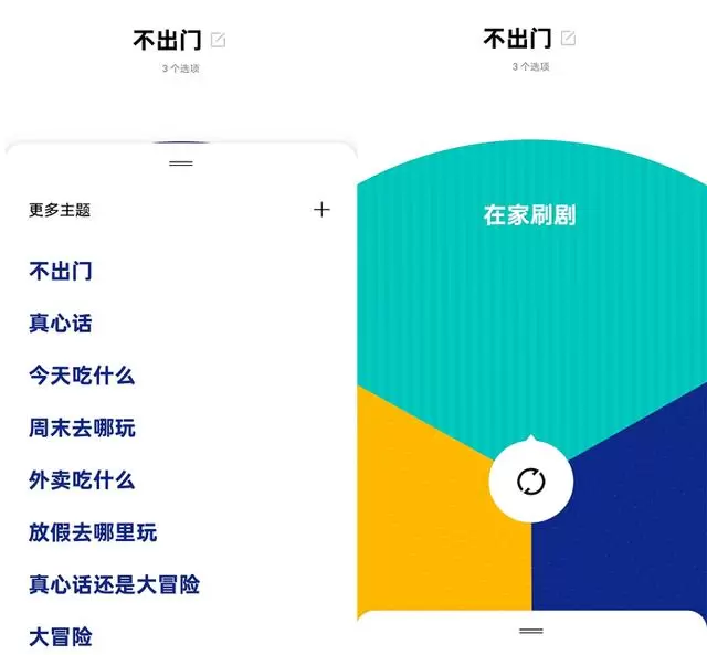 由于可自定义程度高,用户可以用「就决定是你了」设置不同类型的问题,类似于设置「不出门」主题,可以设置「在家躺着」、「在家刷剧」以及「在家做美食」等选项,一个人也可以很快乐。而对于情侣之间更可以相同的行动模式增强二者间的默契感,也免去为没法下决定而可能出现的不必要争吵。