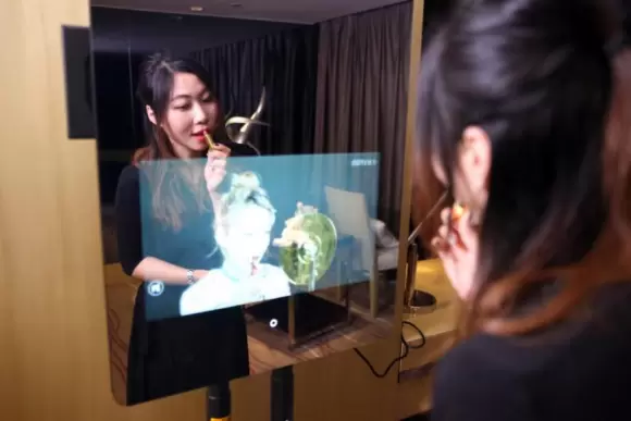 苏宁现场的工作人员向记者介绍,魔镜看上去与传统镜子一般无二,但其因植入AI智能系统,为镜子新增了镜面显示以及人镜互动的功能。它相当于家庭生活的智能管家,用户可通过人体感应、轻触、语音交互等方式,轻松实现“生活服务、信息娱乐、智能控制、健康管理”等实用功能。